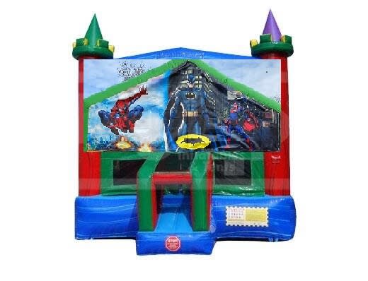 Get ready to save the world with our Ruby Castle bounce house and Super Heroes, Batman, Superman, and Spiderman!