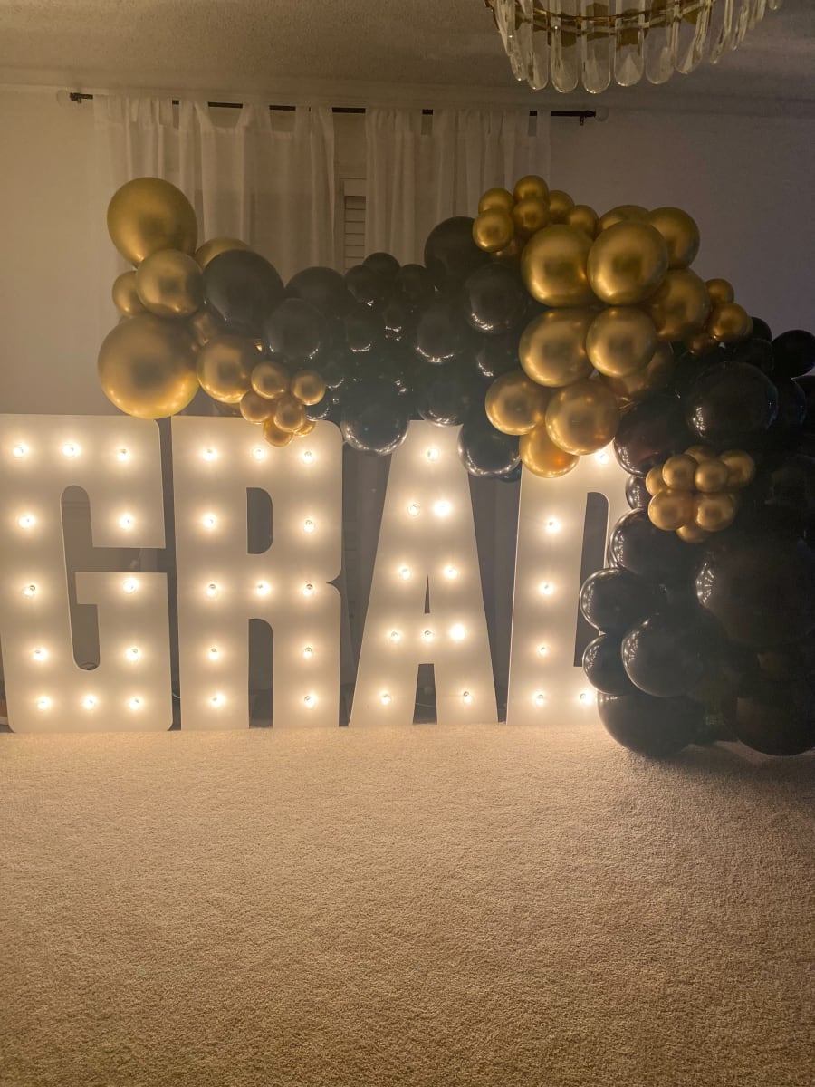 The Grad Marquees letter include the light and 12 ft Balloon Garland